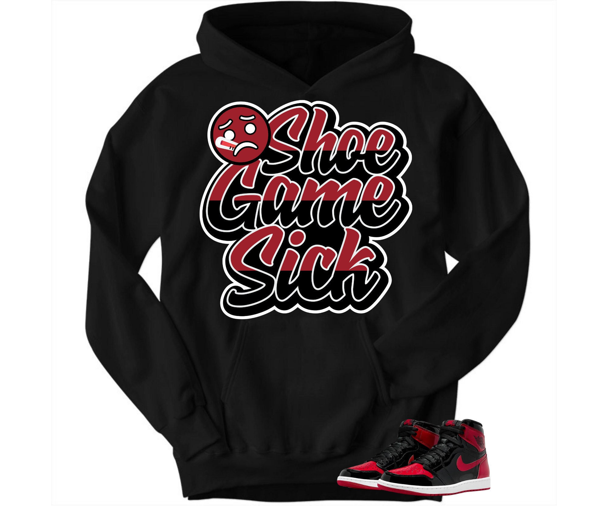 Jordan 1 Patent Bred Hoodie Shoe Game Sick Retro Patent Bred Etsy